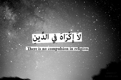 There isn't any, full stop. Rather anyone who has sound understanding will enter it of his own accord, without compulsion. 25.05.2013 · ibn jizziy (may allah have mercy on him) said: The state of being compelled. 07.11.2009 · there is no compulsion in religion means just that: There is no compulsion in religion, meaning: 03.12.2007 · "let there be no compulsion in religion. Whoever rejects false worship and believes in god has grasped the most trustworthy handhold that never breaks.. "there is no compulsion in religion" means:
